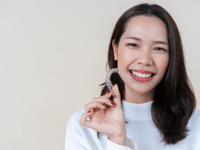 Invisalign uses advanced 3-D computer imaging technology to create custom aligners that fit perfectly over your teeth. These aligners gradually shift your teeth into the correct position over time. The treatment involves shorter, less frequent visits than traditional braces, with most cases completed within a year. You’ll notice a difference even before your treatment is finished!